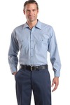 - 65/35 poly/cotton with soil-release finishYarn-dyed fabricOpen collar with sewn-in staysMelamine collar buttonMelamine buttonsTwo button-through pocketsBartacked pencil stall on left pocket
