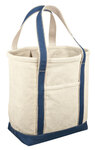 Our sturdy tote is ready for a monogram. Contrast handles and trim internal accessory pockets and key fob exterior pocket. Stands upright with a flat bottom. Made of 24-ounce 100% cotton canvas. Dimensions:13.25"h x 12"w x 6.25"d.Note: Bags not intended for use by children 12 and under. Includes a California Prop 65 and social responsibility hangtag.